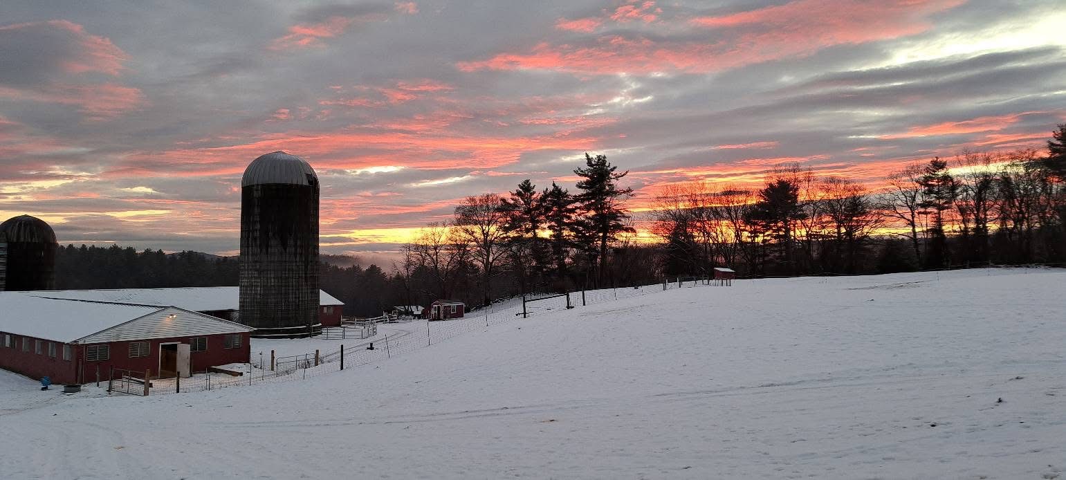 The farm is a wonderful place to visit in the winter. It is quiet and peaceful and absolutely stunning at sunset. You just need to bundle up, pack some traction for your boots and make sure you have a little extra time to observe the amazing adaptions that our farm animals have to stay warm.